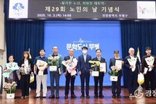 광장일보 주재영 기자 | 부평구는 2일 구청에서 지역 어르신 400여 명이 참석한 가운데 ‘제29회 노인의 날 기념식’을 개최했다. 이날 기념식은 10월 경로의 달과 노인의 날(10월 2일)을 맞아 국가와 지역사회 발전의 중추적 역할을 해오신 어르신들의 노고를 격려하고자 마련됐다. 먼저 어르신 대표의 노인강령 낭독을 시작으로 지역사회 모범이 되는 어르신과 노인복지 증진에 헌신해 온 개인·기관 등에 표창 수여가 진행됐다. 이를 통해 참석자들은 우리 사회를 이끌어온 어르신들에 대한 감사와 공경의 의미를 되새겼다, 기념식 후 2부 행사로는 (사)대한노인회 부평구지회 주관으로 ‘경로효친 한마당 큰잔치’가 열렸다. 축원무, 민요, 트로트 등 다채로운 축하 공연이 펼쳐져 행사에 참석한 어르신 모두가 하나돼 즐거운 시간을 보냈다. 차준택 구청장은 “건강한 모습으로 뜻깊은 행사에 참석하신 어르신들과 노인복지 발전을 위해 힘쓰시는 종사자분들에게 진심으로 감사와 축하를 전한다”며 “부평구는 앞으로도 어르신들의 행복한 노후를 위해 최선을 다하겠다”고 말했다.