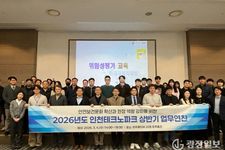 광장일보 주재영 기자 | 인천테크노파크(인천TP)는 지난 4일 미추홀타워 20층 미추홀관에서 관리감독자·안전담당자 60여 명이 참석한 가운데 ‘2026년도 상반기 안전보건 업무연찬’을 개최했다. 이번 업무연찬은 기관의 안전보건 실무역량을 강화하고, 최근 각종 재난 이슈에 대비한 현장 대응 능력을 높이기 위해 마련됐다. 이날 연찬에서는 ▲위험성평가 실행력 제고 방안, ▲건축물 내 재난유형별 행동요령, ▲연구활동 특성에 맞는 보호구 선정 및 활용 기준 등 현장 적용 중심의 교육이 진행됐으며, 참석자들은 사례 기반 강의를 통해 실질적인 대응 역량을 점검하는 시간을 가졌다. 인천TP는 이번 업무연찬을 통해 관리감독자와 안전담당자의 전문성을 강화하고, 자율적 안전관리 역량을 높여 중대재해 예방 기반을 더욱 공고할 계획이다. 인천TP 관계자는 “안전은 특정 부서의 업무가 아닌 전 직원이 함께 만들어가는 조직문화”라며, “현장 중심 교육을 지속 확대해 책임 있는 안전관리 문화가 조직 전반에 뿌리내리도록 할 계획”이라고 밝혔다.