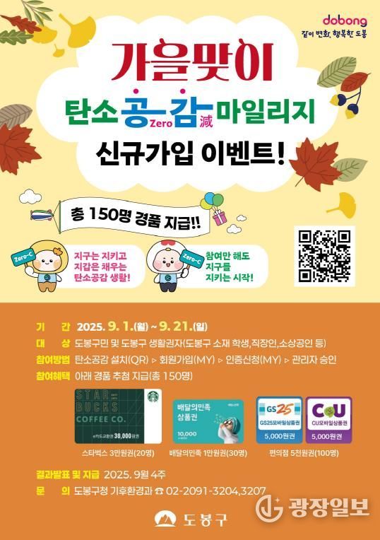 광장일보 주리아 기자 | 서울 도봉구가 9월 21일까지 가을맞이 탄소공(Zero)감(減)마일리지 신규가입 이벤트를 진행한다.