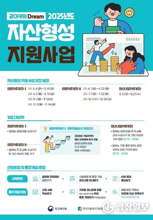 ‘희망저축계좌Ⅰ’은 근로활동을 하고 있는 생계·의료급여 수급 가구를 대상으로, 매월 10만 원 이상을 저축하면 정부가 월 30만 원의 근로소득 장려금을 추가 지원하는 맞춤형 자산형성 지원사업이다.