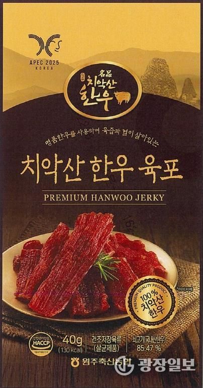 광장일보 이현나 기자 | 원주시 대표 한우 브랜드인 치악산한우 육포가 2025년 아시아태평양경제협력체(APEC) 정상회의 공식 협찬품으로 선정됐다.