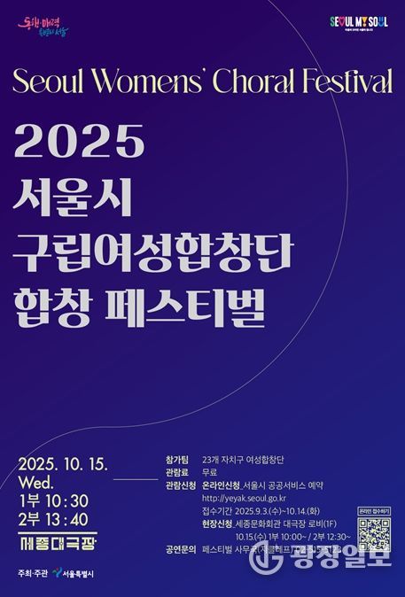 광장일보 주리아 기자 | 서울시는 깊어가는 가을을 맞아 오는 10월 15일 오전 10시 30분부터 세종문화회관 대극장에서 '2025 서울시 구립여성합창단 합창 페스티벌'을 개최한다. 이번 페스티벌에는 서울시 23개 자치구 여성합창단 700여 명이 무대에 올라, 아름다운 화음으로 시민들에게 잊지 못할 감동과 따뜻한 추억을 선사할 예정이다.
