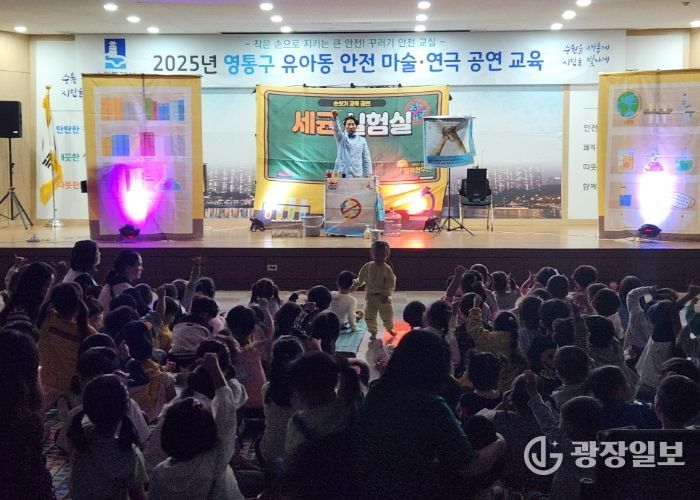 광장일보 나학천 기자 | 수원시 영통구는 2025. 10. 13. 영통구청 대회의실에서 관내 유아를 대상으로 안전한 위생 습관을 형성하기 위한 ‘찰리박사의 세균실험실’ 체험형 안전마술·연극 공연 교육을 실시했다.