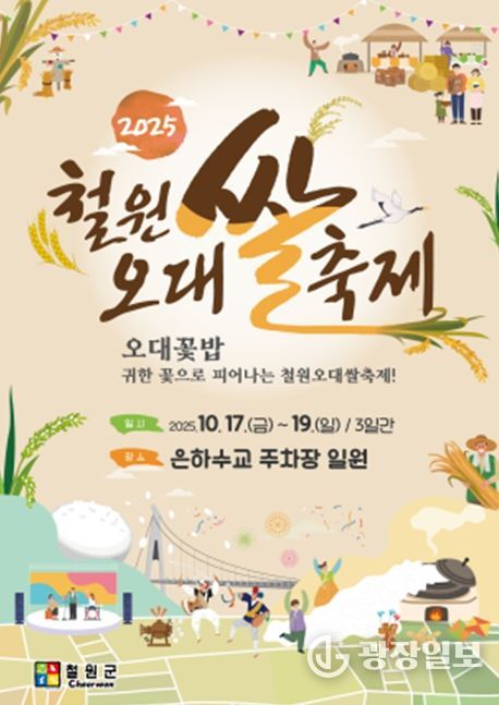 광장일보 이현나 기자 | 철원군은 10월 17일부터 19일까지 3일간 철원군 동송읍 장흥리 2721번지 은하수교 주차장 일원에서 『2025 철원오대쌀 축제』를 개최한다.