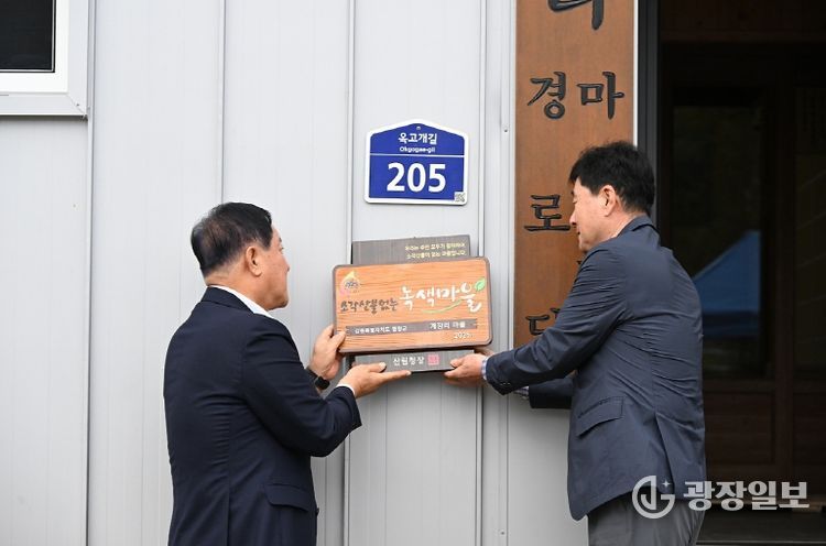 광장일보 이현나 기자 | 평창군은 14일 오전 11시, 평창읍 계장리 마을회관에서 ‘소각 산불 없는 녹색마을’의 우수마을로 선정된 계장리에 현판을 수여했다.