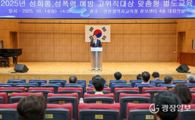 광장일보 주재영 기자 | 인천광역시교육청은 14일 관내 시교육청, 교육지원청, 직속기관의 기관장을 포함한 간부 공무원을 대상으로 성희롱·성폭력 예방을 위한 별도 교육을 실시했다고 밝혔다.