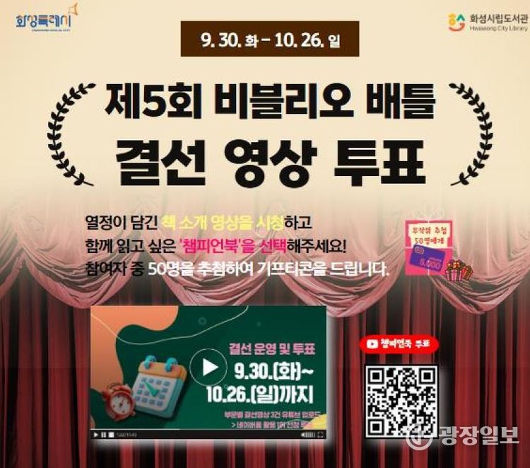 광장일보 나병석 기자 | 화성시문화관광재단은 오는 10월 26일까지 '제5회 비블리오 배틀' 결선 영상투표를 진행한다.