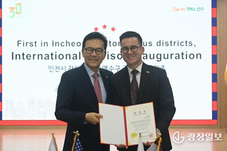 이번 위촉은 지난 7월 연수구와 코튼우드 하이츠시(시장 마이크 웨이커스)가 우호 협약을 체결한 이후 양 도시 간 우호 관계 발전과 공동협력을 강화하기 위해 마련됐다.