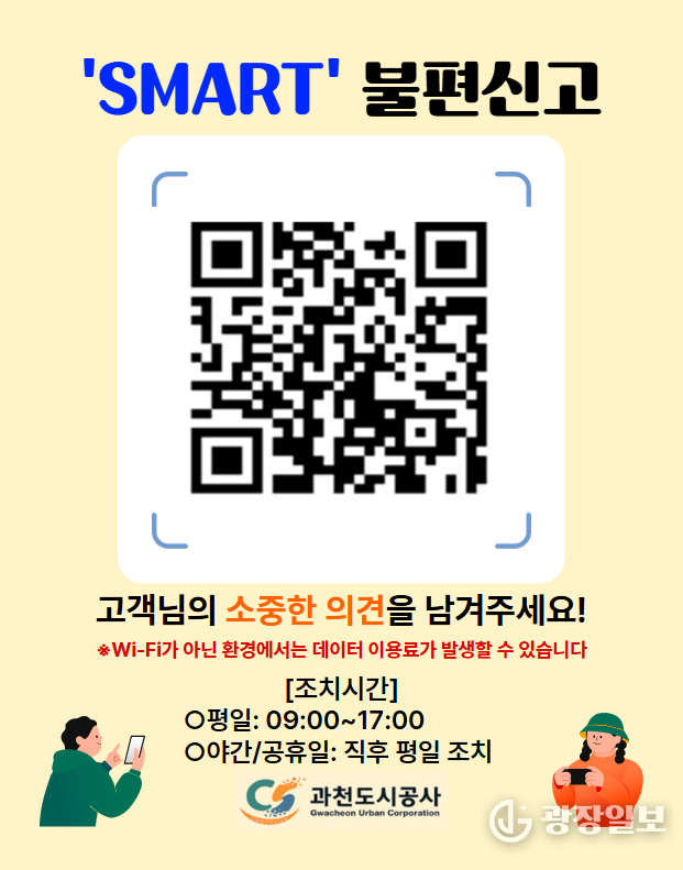 과천시= 주재영 기자 | 과천도시공사(이하 ‘공사’)는 관문체육공원과 문원체육공원 이용 중 발생하는 불편 사항을 시민이 간편하게 신고할 수 있는 ‘스마트 불편신고 시스템’ 을 10월부터 운영한다고 20일 밝혔다.