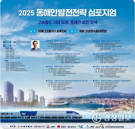광장일보 이현나 기자 | 동해시는 오는 10월 22일 오후 2시, 국회 고성연수원 대강당에서 고속철도 시대 도래에 따른 동해안 발전전략 심포지엄에 참석하여 동해안 6개 시군과 공동으로 ‘고속철도 시대, 동해안의 상생 발전을 위한 전략’을 모색한다.