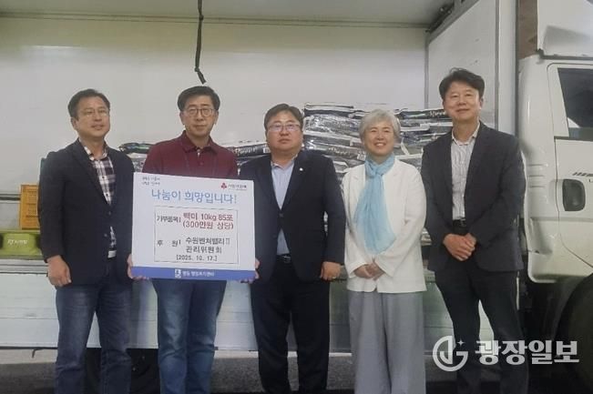 광장일보 나학천 기자 | 수원시 권선구 고색동 수원델타플렉스(산업단지)에 위치한 수원벤처밸리Ⅱ 지식산업센터 관리위원회에서는 지난 18일, 임직원 화합 및 소통의 장을 마련하기 위해 제5회 한마음 체육행사를 개최하고, 권선구 평동 행정복지센터에 300만원 상당의 백미(10kg) 85포를 후원했다.