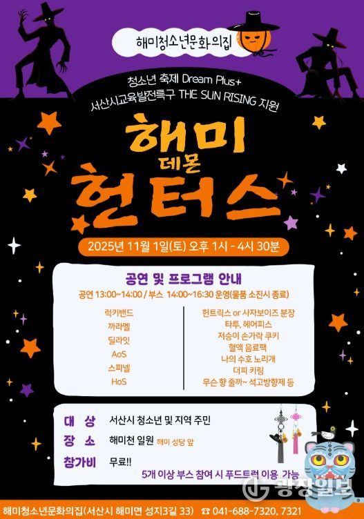 이번 축제는 서산시교육발전특구 THE SUN RISING 사업의 지원을 받아 청소년들이 직접 기획하고 운영하는 참여형 행사로, 한국형 핼러윈 콘셉트를 통해 청소년들이 자율성과 창의성을 발휘하며 즐길 수 있는 문화 콘텐츠로 구성된다.