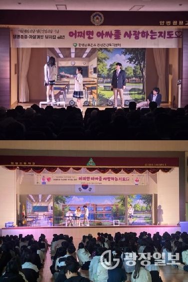 함평군은 20일 “함평군 보건소 정신건강복지센터가 지난 16일부터 17일 이틀간 함평골프고·함평초·함평중학교 등 3개 학교에서 ‘생명 존중 문화’를 주제로 창작 뮤지컬 공연을 진행했다”고 밝혔다.
