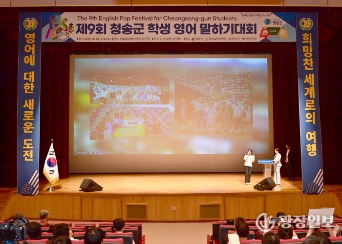 광장일보 주재영 기자 | 청송군은 지난 15일, 진보청년연합회 주관으로 진보문화체육센터 대공연장에서 ‘제9회 청송군 학생 잉글리시 팝 페스티벌’을 성황리에 개최했다고 밝혔다.