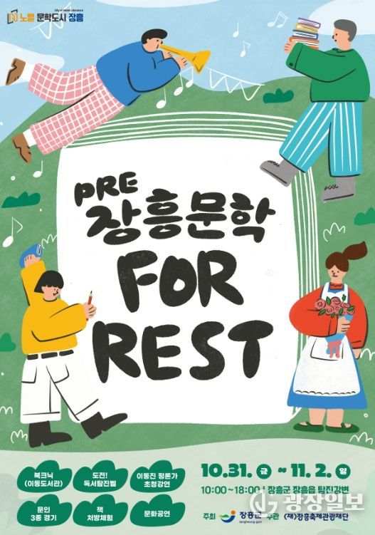 광장일보 주재영 기자 | 장흥군과 (재)장흥축제관광재단은 오는 10월 31일 열리는 ‘PRE-장흥 문학 포, 레스트’ 행사 시낭송 대회 참가자를 모집한다고 밝혔다.