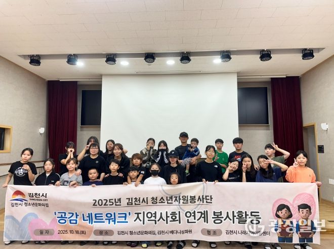광장일보 주재영 기자 | 김천시 청소년문화의집에서는 지난 10월 18일, 청소년 자원봉사단과 나래 지역아동센터 아동들이 한자리에 모여 ‘사랑 가득 김장 나눔' 봉사활동을 펼쳤다고 밝혔다.