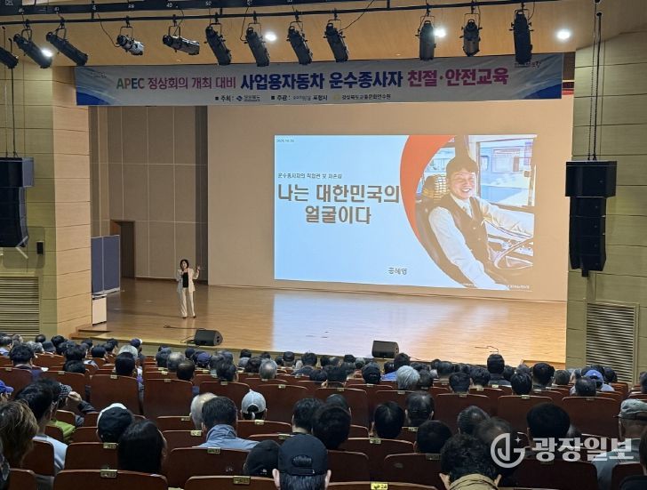 광장일보 주재영 기자 | 포항시는 20일부터 오는 23일까지 나흘간 덕업근로자종합복지관에서 버스·택시·화물 등 사업용자동차 운수종사자 1,200명(하루 300명씩)을 대상으로 ‘APEC 정상회의 개최 대비 친절·안전 교육’을 진행하고 있다.