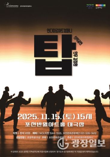 포천문화관광재단은 경기문화재단 '2025 경기예술지원–공연장 지역상주단체 지원사업'에 선정되어 도비 8천만 원의 지원금을 확보했으며, 현대무용단체 안다미로아트컴퍼니와 협력기관인 수원문화재단(수원SK아트리움)과 함께 사업을 추진한다. 이번 사업을 통해 포천문화관광재단은 신작공연 ‘탑:TOP’을 선보이고, 수원문화재단은 기획공연 ‘문(門)’과 관객개발 프로그램을 운영할 예정이다. 이를 통해 지역 공연장과 예술단체 간 협력체계를 강화하고, 공연예술의 창작·발표 기반을 확대하며 현대무용의 다양성과 대중성을 확산하는 계기가 될 것으로 기대된다.