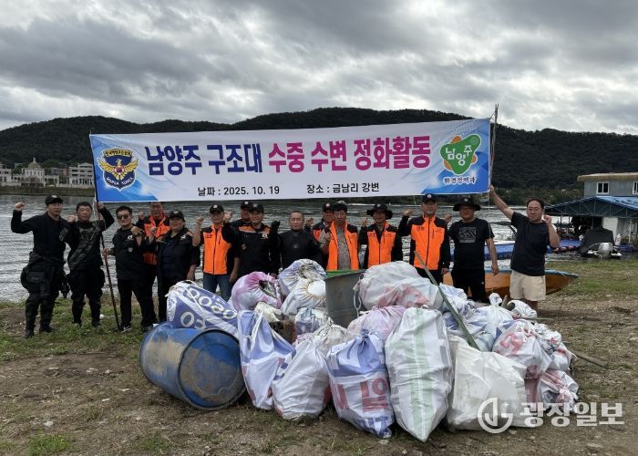 광장일보 주재영 기자 | 남양주시는 19일 금남리 어촌계 선착장 일원에서 사단법인 한국해양구조협회 남양주구조대 주관으로 ‘수중·수변 정화활동’을 진행했다고 밝혔다.