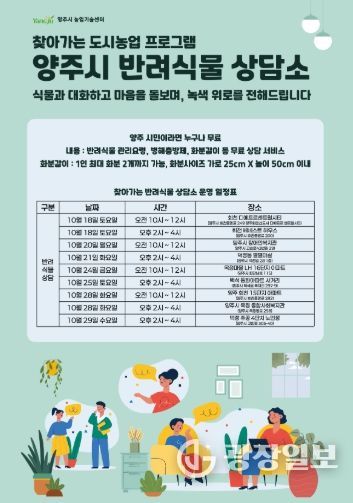 광장일보 주재영 기자 | 양주시가 시민들의 정서적 치유와 녹색생활 실천을 돕기 위해 10월 29일까지 ‘찾아가는 반려식물 상담서비스’를 운영한다.