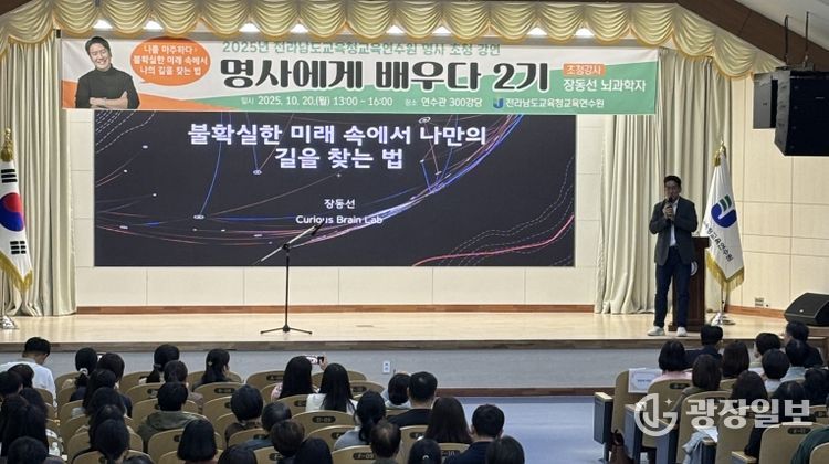 광장일보 주재영 기자 | 전라남도교육청교육연수원(원장 김병인)은 10월 20일 연수관에서 ‘명사에게 배우다’ 제2기 특강을 갖고 교육가족들에게 새로운 영감과 사유의 시간을 제공했다.