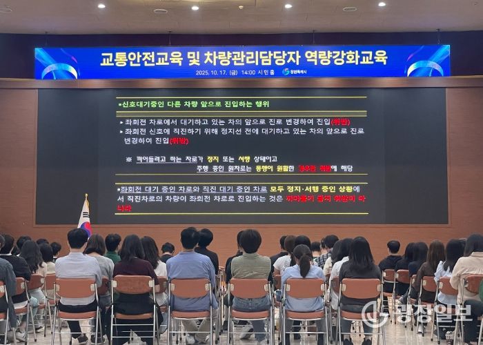 광장일보 주재영 기자 | 창원특례시는 17일 시 소속 공무원 250여 명을 대상으로 공무용 차량 안전 운행 역량 강화를 위한 교통안전교육을 실시했다.