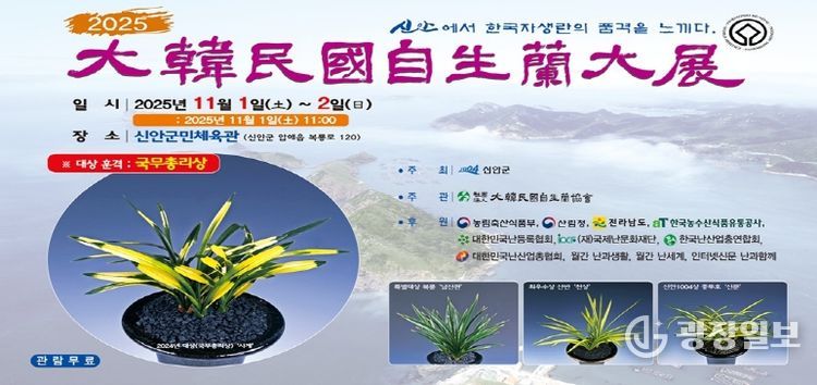 광장일보 주재영 기자 | 2025 대한민국자생란대전이 오는 11월 1일부터 2일까지 압해도 신안군민체육관에서 개최된다. 이번 대전은 전국에서 출품된 약 2,000여 점의 자생란 작품을 선보이며, 멸종위기종을 포함한 희귀 자생란의 보존과 난문화 대중화, 산업화 기반 조성을 목표로 한다.