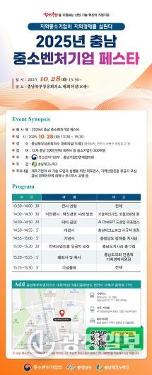 광장일보 주재영 기자 | (재)충남테크노파크(원장 서규석)는 도내 중소벤처기업의 혁신 성장과 상생 네트워크 강화를 위해 '2025 충남 중소벤처기업 페스타'를 28일 충남북부상공회의소 10층 대회의실에서 개최한다고 밝혔다.