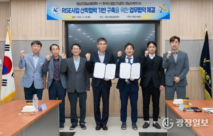 광장일보 주재영 기자 | 경남도립남해대학(총장 노영식)은 20일 오후 2시 교내 혁신학습지원실에서 한국산업단지공단 경남서부지사와 ‘경남 지역혁신중심 대학지원체계(RISE) 사업’ 추진을 위한 업무협약을 체결했다고 밝혔다.