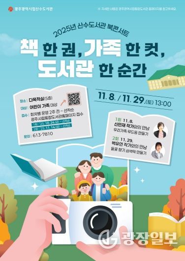 광장일보 주재영 기자 | 광주광역시립산수도서관이 오는 11월 8일과 29일 두 차례 ‘가족을 위한 북콘서트’를 개최한다.