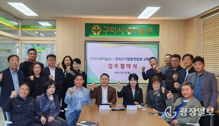 광장일보 주재영 기자 | 구미시새마을회(회장 하준호)와 전국소기업총연합회 구미시지부(회장 김춘희)가 지난 20일 구미시새마을회관 3층 회의실에서 지역경제 활성화와 상생협력 강화를 위한 업무협약을 체결했다.