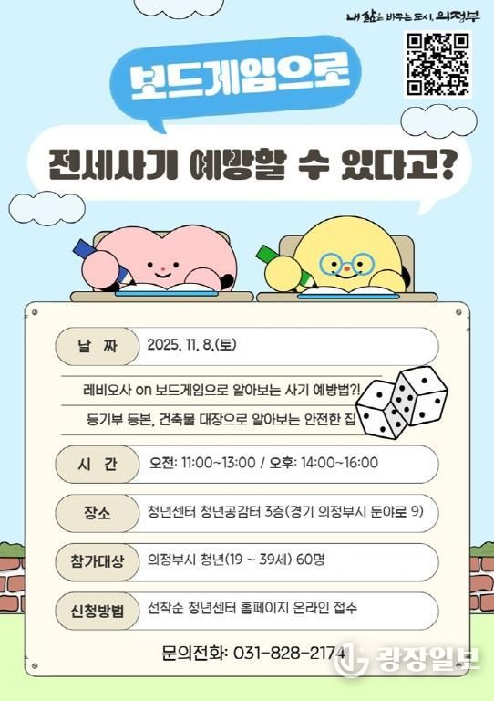 광장일보 주재영 기자 | 의정부시는 11월 8일 운영 예정인 전세사기 피해 예방 교육용 보드게임 프로그램 ‘레비오사 보드ON’에 참여할 청년을 모집한다.
