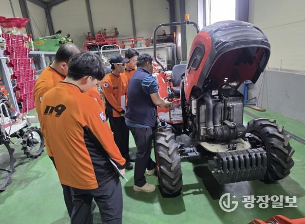 이번 교육은 영농철에 발생하는 농기계 안전사고에 대한 구조 활동 능력을 높일 수 있도록 농기계의 주요 부품과 작동 원리를 익히고, 사고 발생 시 농기계를 해체하고 조작하는 방법에 대한 실습이 진행됐으며, 농기계 안전사고의 실제 사례와 구조 경험을 공유해 사고 현장에서의 대응 능력을 높였다.