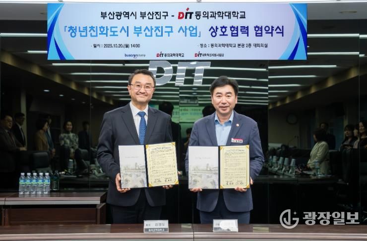 광장일보 주재영 기자 | 부산 부산진구는 10월 20일 오후 2시, 동의과학대학교 본관 대회의실에서 동의과학대학교와 ‘청년친화도시 부산진구 사업’ 상호협력 협약을 체결했다고 밝혔다.