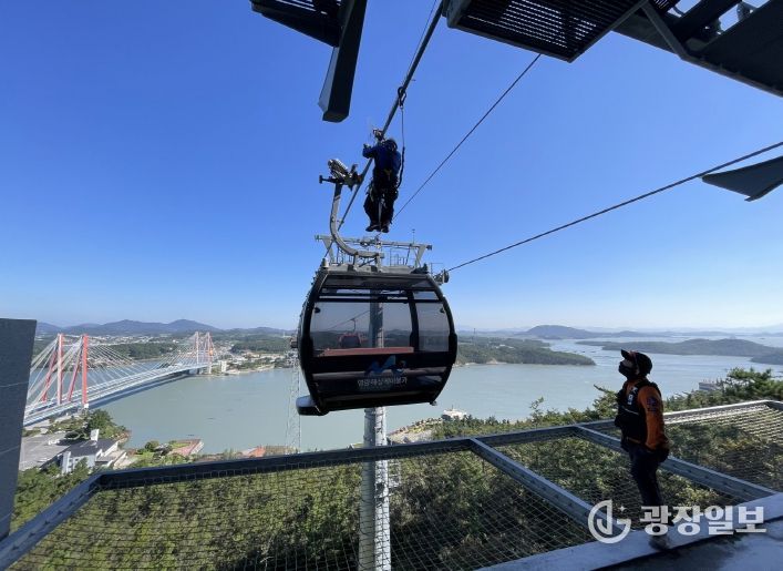 광장일보 주재영 기자 | 가을여행주간을 맞이하여 전남도로 많은 가족단위 여행객들이 방문이 많아지면서 안전에 대한 관심이 높아지고 있는 가운데 명량해상케이블카는 지난 10월 20일 비상상황 대응 능력을 강화하기 위해 진도소방서와 함께 케이블카 합동 구조훈련을 실시했다.