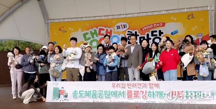 광장일보 주재영 기자 | 연수구자원봉사센터가 지난 10월 18일, 송도혜윰공원 반려견 놀이터에서 '우리집 반려견과 함께 플로깅하개~ 기부하개~' 행사를 성황리에 개최했다.