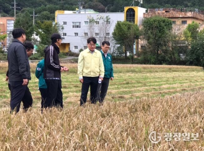 광장일보 주재영 기자 | 경상남도는 21일 창원 벼 깨씨무늬병 피해 현장을 이정곤 경남도 농정국장이 찾아 피해 현황을 점검하고 농업인을 위로했다고 밝혔다.