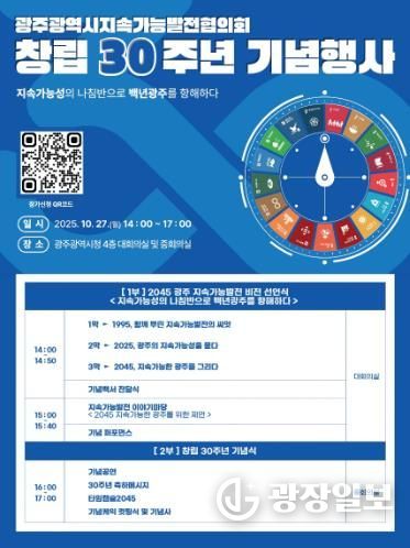 정현윤 기후환경국장은 “광주지속가능발전협의회 30주년 기념행사는 광주시가 지속가능한 미래를 향한 의지를 다지는 중요한 자리”라며 “많은 시민들이 관심을 갖고 적극 참여해 주길 바란다”고 말했다.