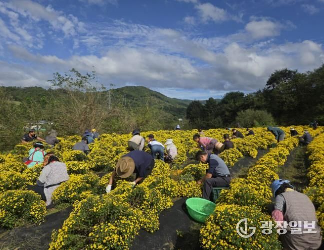 광장일보 주재영 기자 | 산청지역자활센터는 산청읍 일원에서 육묘사업단이 재배한 국화를 수확하고 있다고 22일 밝혔다.