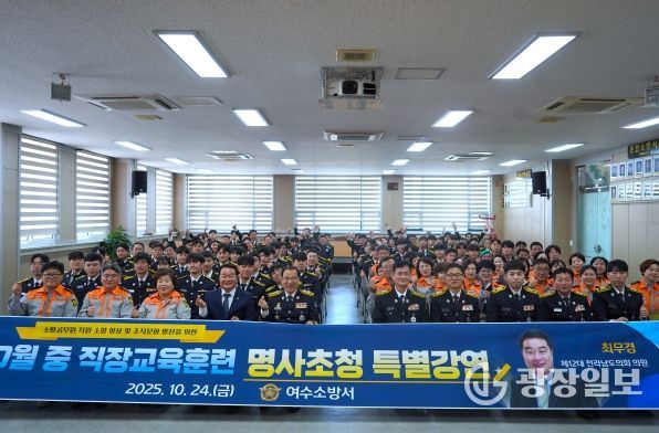 광장일보 주재영 기자 | 여수소방서(서장 서승호)는 10월 24일 본서에서 전 직원 및 의용소방대원을 대상으로 청렴·소통 강화 및 전기차 화재대응 특별교육, 명사 초청 공직자 교육을 실시했다.