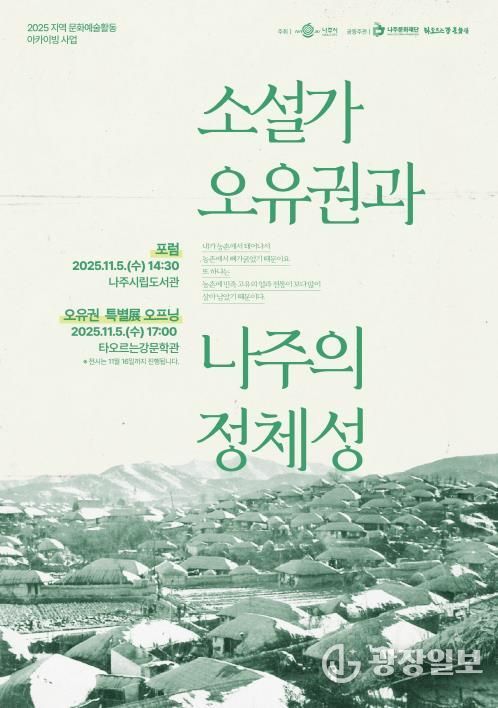 나주문화재단은 오는 11월 5일 나주시립도서관과 타오르는강문학관 일대에서 ‘소설가 오유권과 나주의 정체성’을 주제로 포럼, 전시, 문학 투어를 개최한다고 27일 밝혔다.