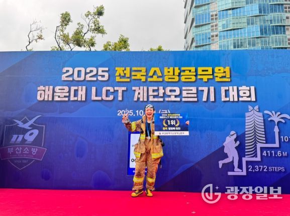 광장일보 주재영 기자 | 천안서북소방서는 지난 10월 24일 부산 해운대 LCT 랜드마크동에서 열린 ‘2025 전국소방공무원 해운대 LCT 계단오르기 대회’에서 정정민 소방교가 방화복 개인전 여자 부문 1위를 차지했다고 27일 밝혔다.