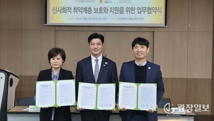 광장일보 주재영 기자 | 굿네이버스 광주지부(본부장 겸 사회적약자통합지원센터장 배준열)는 광주광역시의회 환경복지위원회 이명노(더불어민주당·서구3) 의원실, 광주광역시사회서비스원(원장 김대삼)과 함께 신사회적 취약계층 보호와 지원 강화를 위한 업무 협약식을 24일 진행했다고 밝혔다.