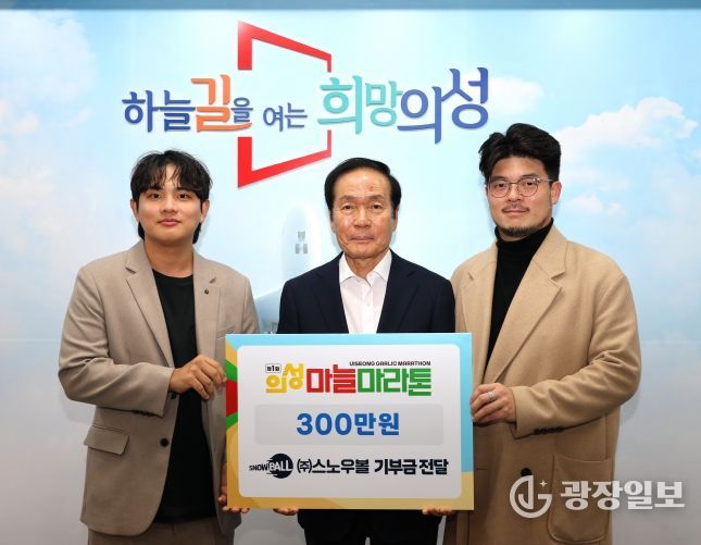 광장일보 주재영 기자 | (재)의성군인재육성재단(이사장 김주수 의성군수)은 지난 10월 24일, 청년 창업기업 ㈜스노우볼(대표 이설)이 2025년 의성마늘마라톤대회 수익금 일부인 300만 원을 지역 인재육성을 위한 장학금으로 기탁했다고 밝혔다.
