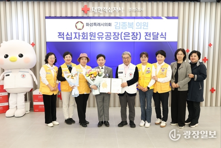 화성특례시= 나병석 기자 | 화성특례시의회 문화복지위원회 김종복 의원(동탄4·5·6동)이 28일 대한적십자사 경기도지사 남중부봉사관에서 ‘대한적십자사 회원유공장 은장’을 수상했다.