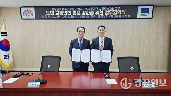 광장일보 주재영 기자 | 충청남도교통연수원은 22일 한국도로교통공단 교통방송충남본부와 ‘도민 교통안전 홍보 강화를 위한 협약’을 체결했다.