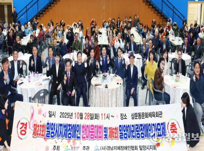 광장일보 주재영 기자 | 경남 밀양시는 28일 밀양문화체육회관에서 (사)경남지체장애인협회 밀양시지회 주관으로 ‘제23회 지체장애인 한마음 단합대회 및 제6회 밀양아리랑 장애인가요제’를 개최했다고 밝혔다.
