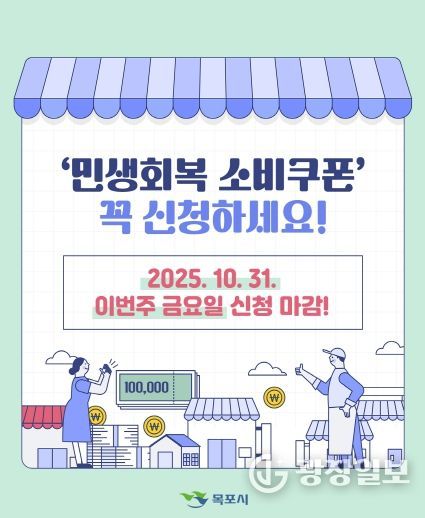 광장일보 주재영 기자 | 목포시가 ‘2차 민생회복 소비쿠폰’의 신청 기한이 오는 31일 오후 6시로 마감된다고 밝혔다.