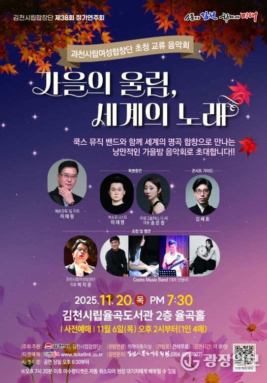 광장일보 주재영 기자 | 김천시문화예술회관은 11월 20일 목요일 오후 7시 30분에 시립율곡도서관 2층 율곡홀에서 시립합창단 제38회 정기연주회를 개최한다.