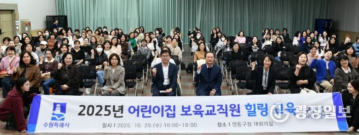 장수석 영통구청장은 “보육현장에서 늘 헌신과 사랑으로 아이들을 돌보는 보육교직원들에게 위로와 격려의 시간이 됐길 바란다”며 “이번 교육이 보다 건강하고 행복한 보육환경을 만들어가는 밑거름이 되길 기대한다”고 전했다.